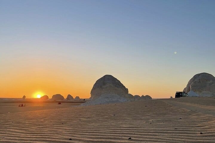 Camp under the desert stars in the Valley of El-Haize Admire the chalk-white rock formations of the White Desert Feast on 3 delicious meals, including a barbecue dinner in the desert Take it easy with private door-to-door round-trip transfers.