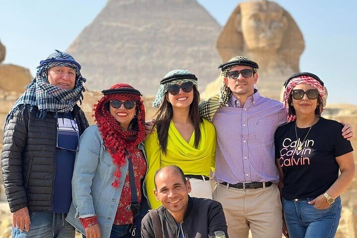 This full-day private tour departing from Cairo or Giza will take you to some of Egypt's most important sites. Visit the Giza Pyramids, the Sphinx, and the Valley Temple, as well as Memphis, Old Kingdom Egypt's capital, and the Dahshur and Saqqara burial cemeteries, each of which have ancient pyramids. Book a transportation-only plan or upgrade to include a guide, admission fees, and a restaurant lunch. Take a personalized tour of Cairo's four most prominent ancient sights. Admire the Giza Pyramids, Sphinx, Memphis, Saqqara, and Dahshur. Upgrade for a personalized guide, tickets, and a local restaurant lunch. Includes two-way private transfers from addresses in Cairo and Giza.